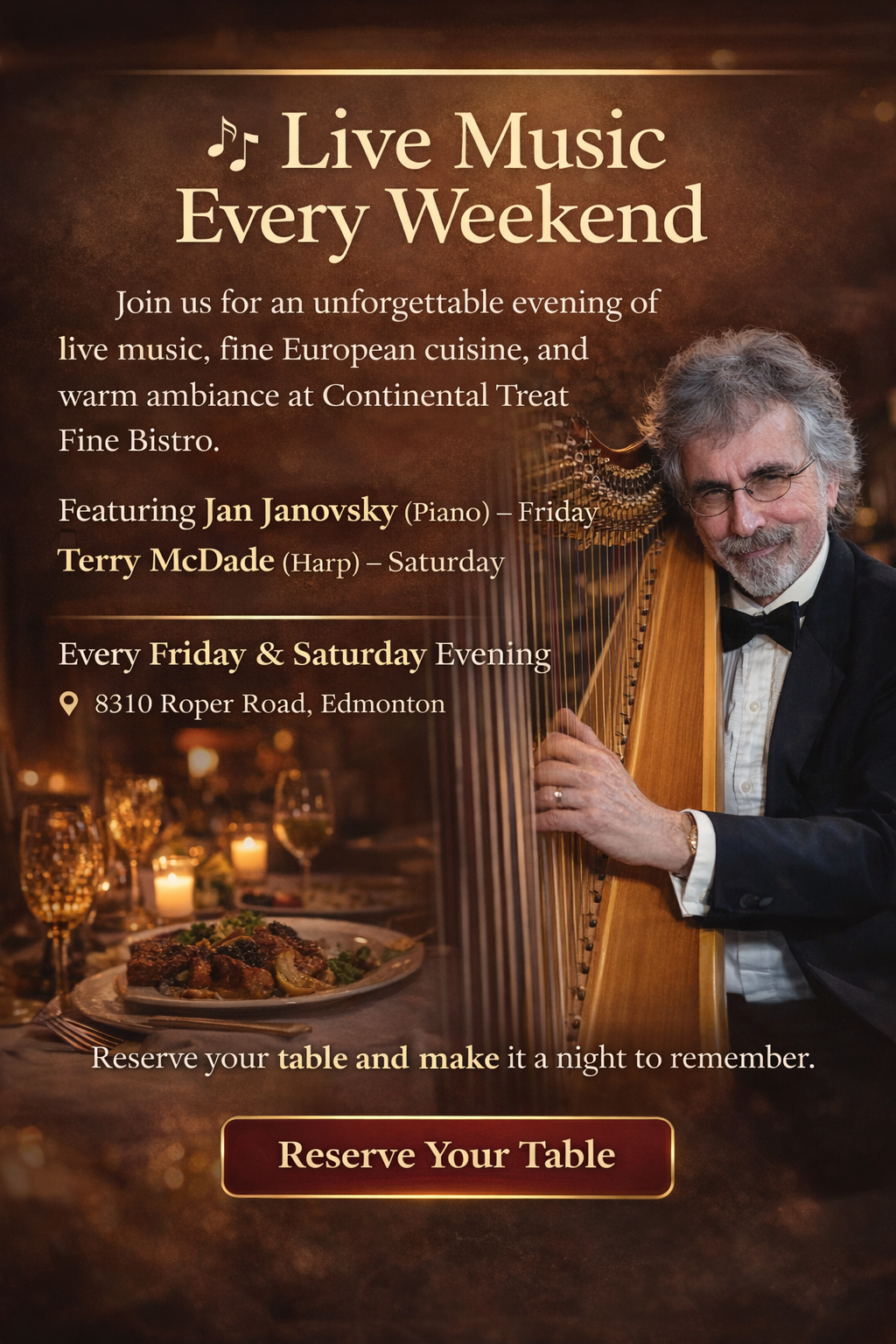 Welcome to Continental Treat Fine Bistro, where every dish tells a story of tradition, passion, and a deep-rooted love for European culinary artistry. Established in 1982, our family-owned bistro has been a beacon of European flavours in the heart of Edmonton, serving as a culinary bridge between the rich tastes of Europe and the vibrant spirit of our local community. We currently are temporary located at 8310 Roper Road, Edmonton AB.